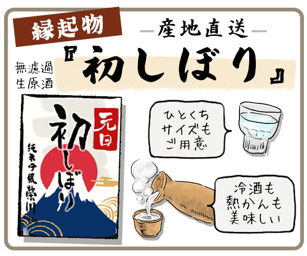 新年の幕開けにふさわしい「縁起の良い日本酒・初しぼり」を数量限定で入荷!なんと、1月1日にしぼったばかりの、究極の新酒なんです。皆さまの新しい1年が良い年になるよう祈って、小平ダイニングから福をお届け!