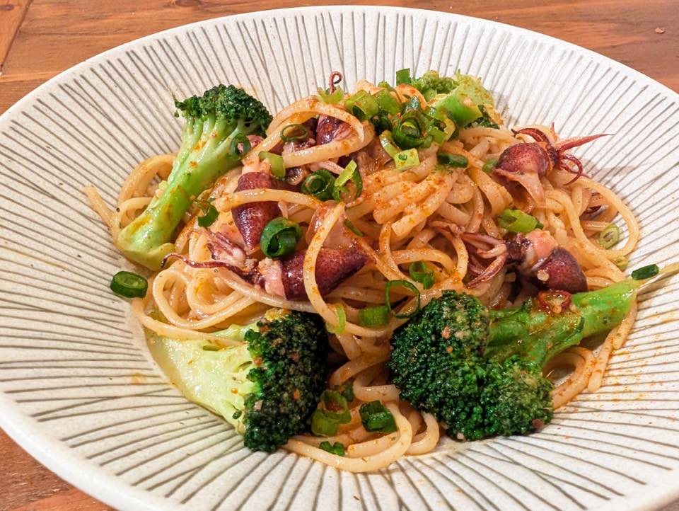 旬の食材を使った人気のオイルパスタは、ちょっぴりピリ辛に仕上げてます。