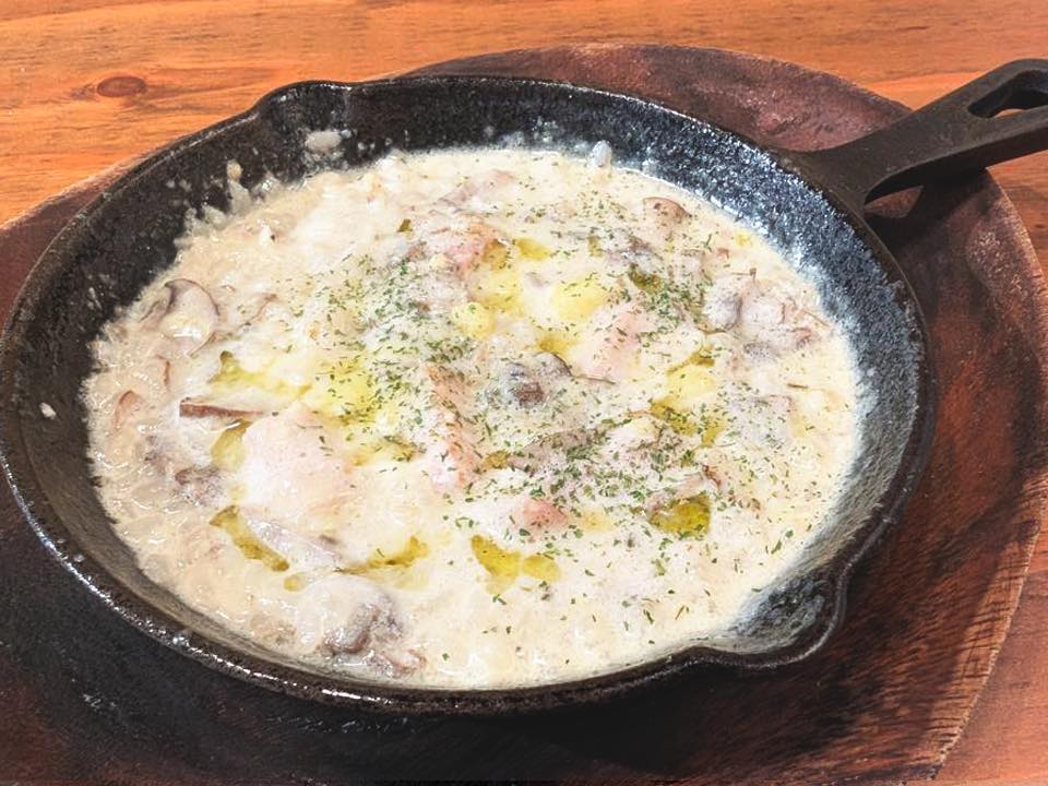 もしお店に来て頂けたら、絶対食べてほしい!オリーブオイルとニンニクで、具材をグツグツに煮込みました。