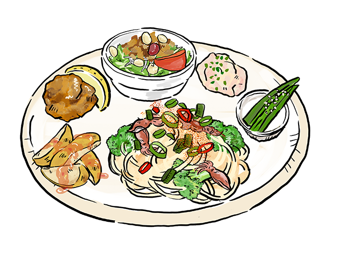 人気メニューがプレートになりました!全てのプレートに、サラダ・フリッター・付け合せ・ソフトドリンクが付いていて、色んなものがちょっとずつお召し上がりただけます♪